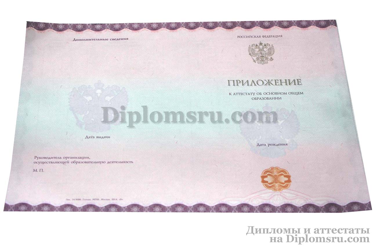 У нас Вы можете купить аттестат нового образца об окончании 9 классов с 2014 по 2021 года включительно. В работе используем бланки со всеми защитными элементами. Заполняем как по государственным стандартам, так и по образцам документов, реально выданных той или иной школой, заверяем печатью нужной Вам школы и подписью её директора.
